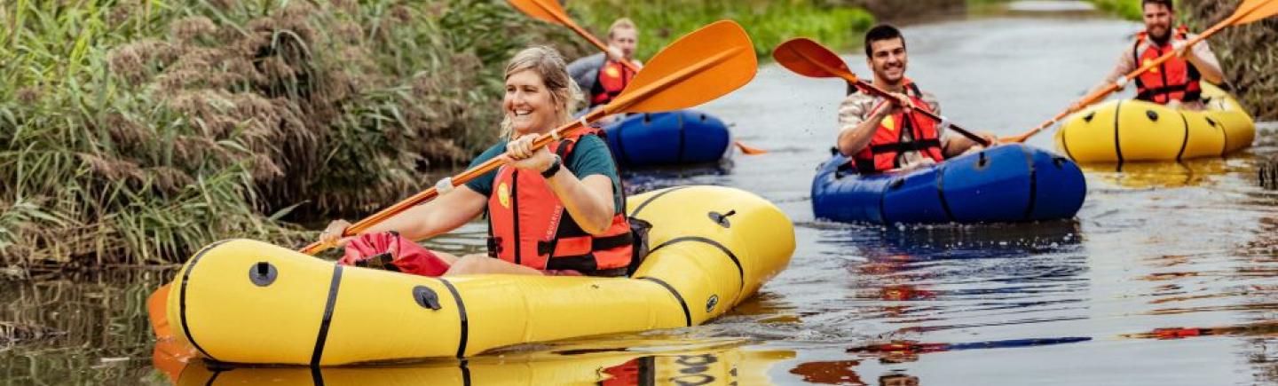 Trek eropuit met een superlichte boot die we op onze rug dragen. Daarna blazen we die op en gaan we het water op! Lunchen doen we op het water met een mooi uitzicht. Als we terug op het vaste land komen wandelen we terug!